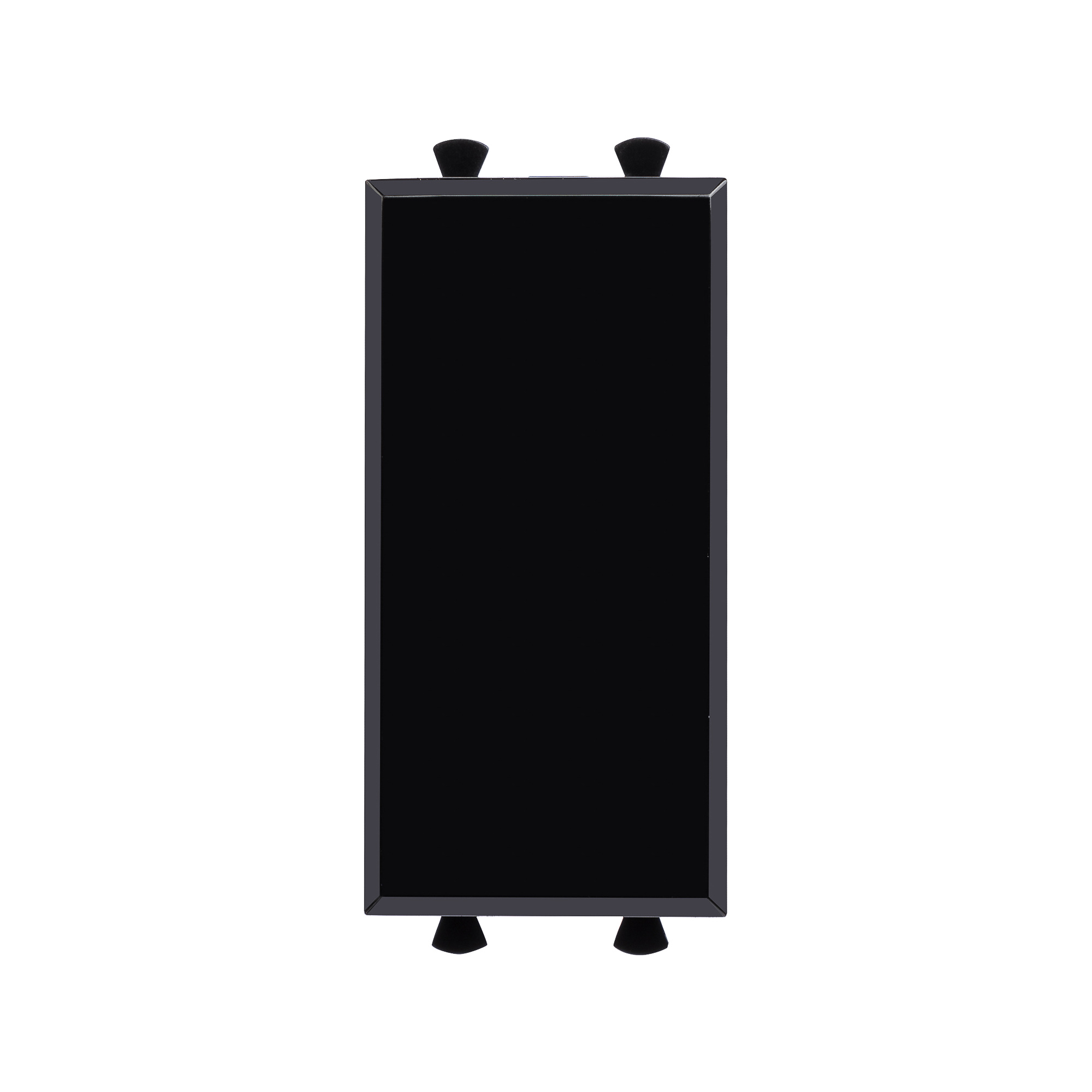 Заглушка подбирается под цвет электроустановочных изделий. Эта модель имеет цвет "Черный квадрат" – насыщенный черный с глянцевым блеском.