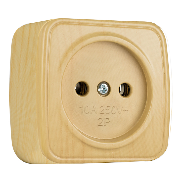EGR10-022-30, Розетка 1-местная ОП Минск 10А без заземления светлое дерево EKF