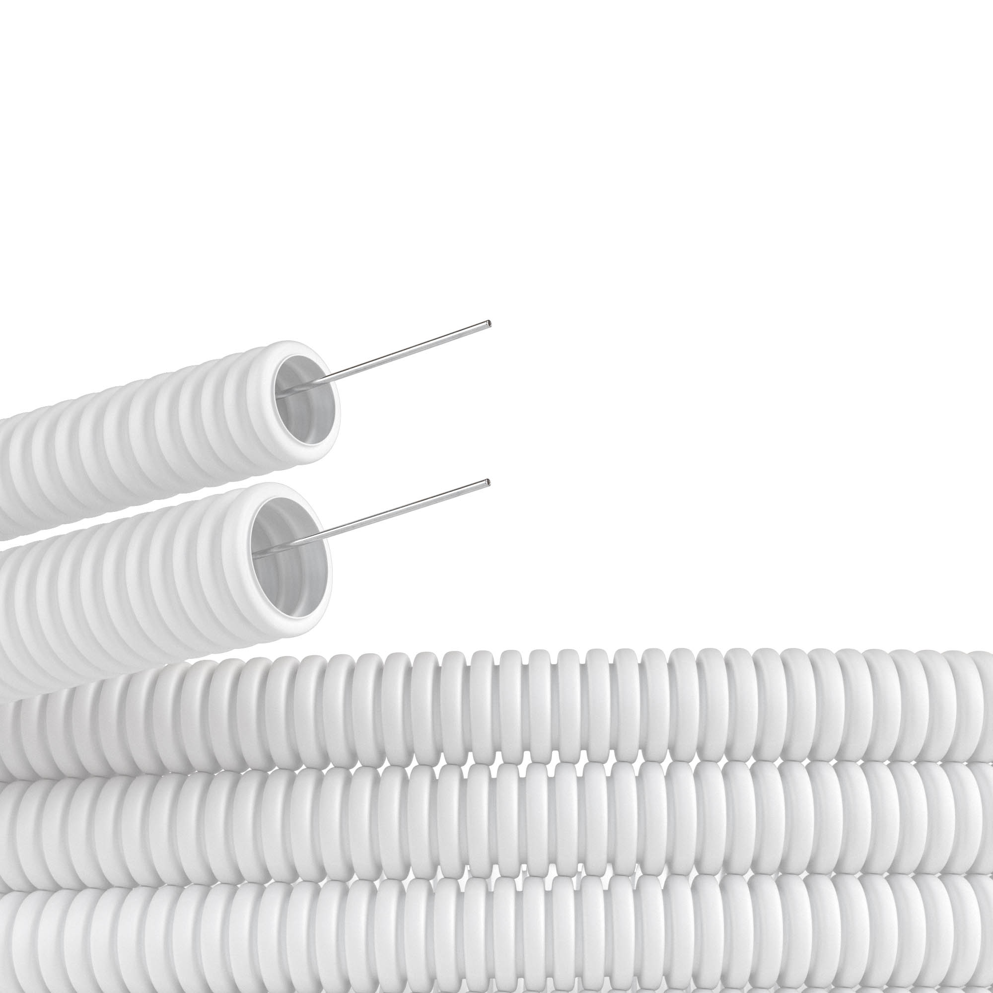 Гибкая труба, не поддерживающая горение, имеет диаметр 40 мм. Для облегчения прокладки кабеля в комплект входит протяжка. Цвет - белый.