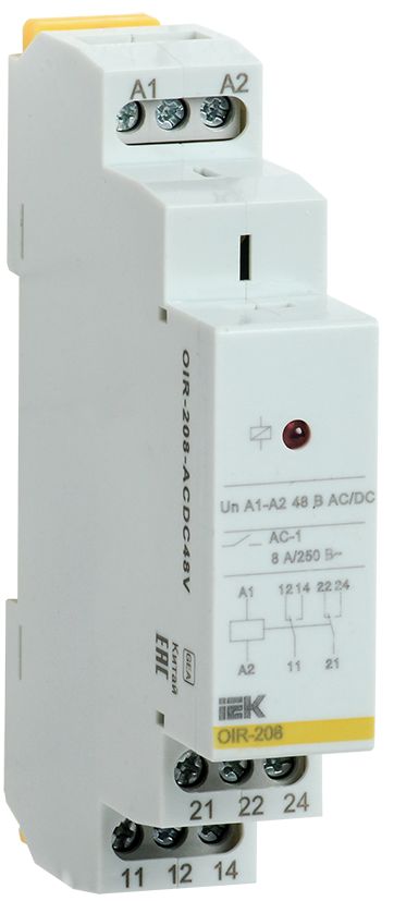 OIR-208-ACDC48V, Реле промежут. OIR 2 конт. 8А 48В AC/DC IEK