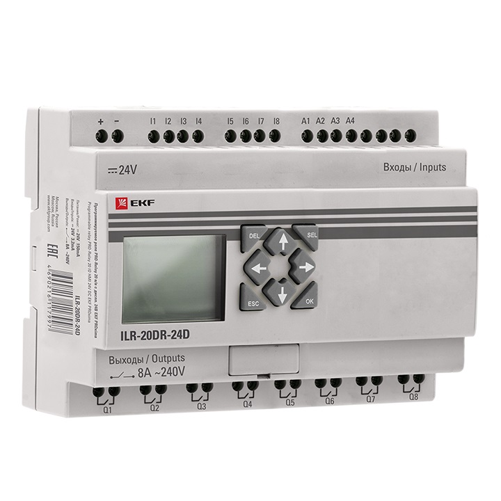 ILR-20DR-24D, Программируемое реле 20 в/в с диспл. 24В PRO-Relay EKF PROxima